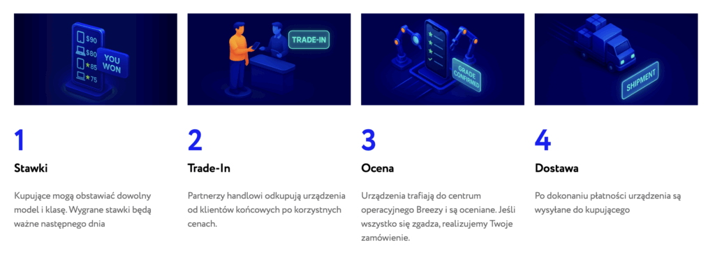 Początkowo klasa towarów jest określana w ramach programu Breezy Trade-in, co zapewnia wysoką dokładność oceny.